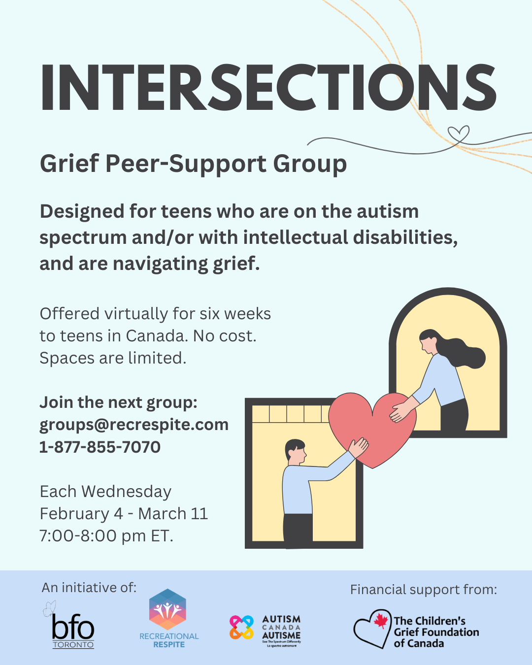 This initiative was prepared by Recreational Respite in partnership with the BFO-Toronto and Autism Canada. While financially supported by The Children's Grief Foundation of Canada, Recreational Respite is solely responsible for all content.